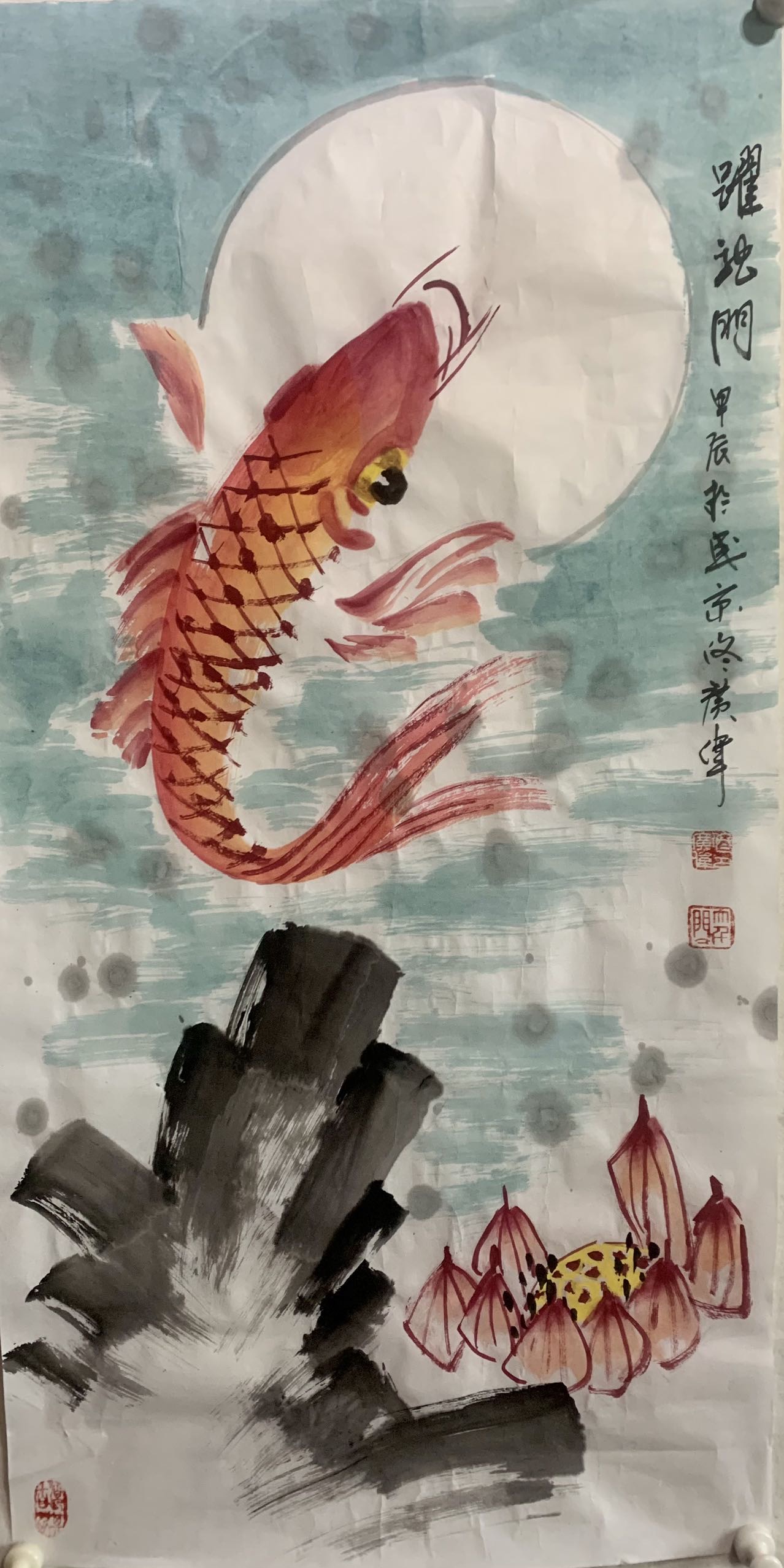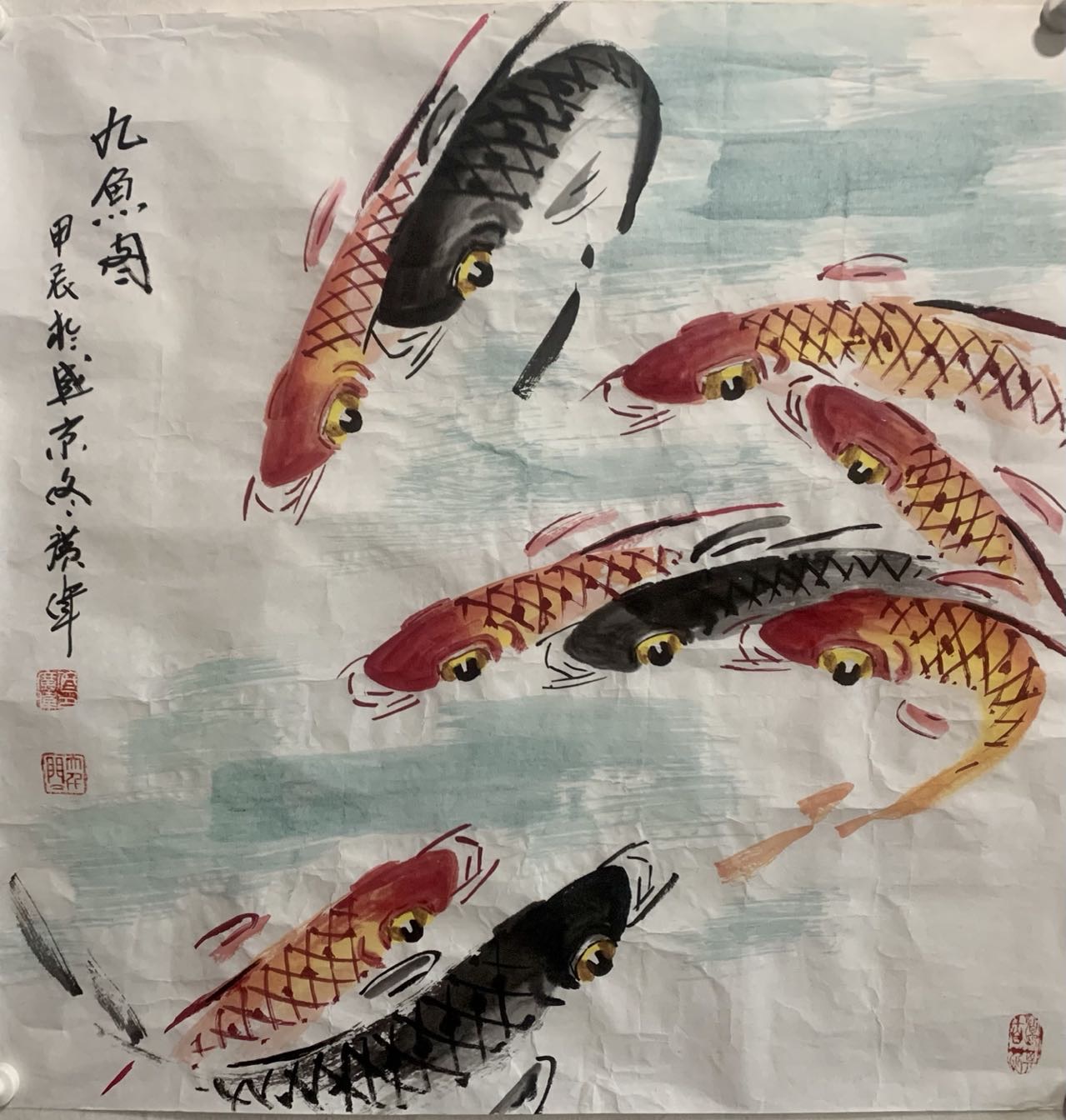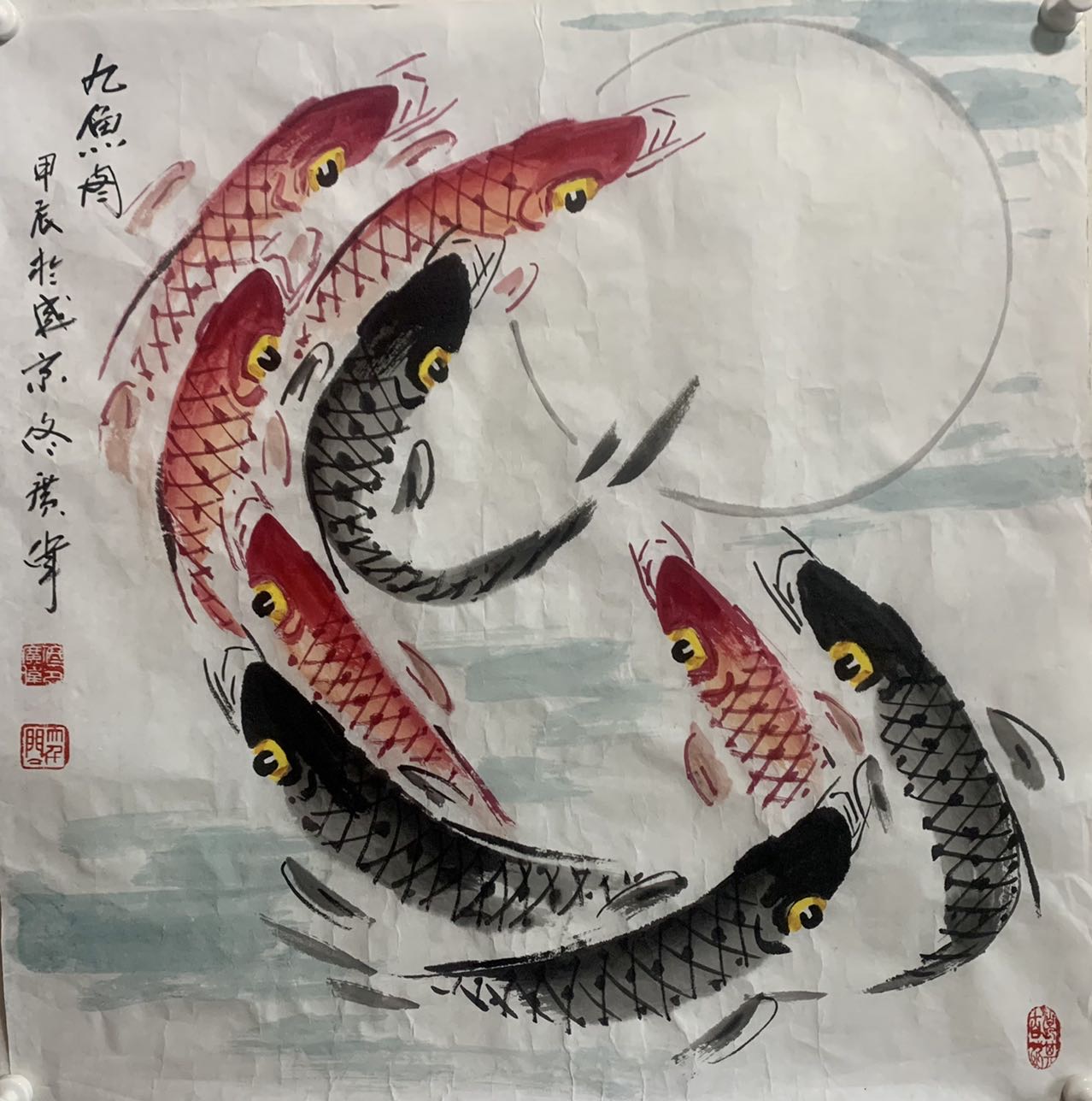 佟广伟 〈九鲤献寿〉省市美协会员,张大千第四代传人。