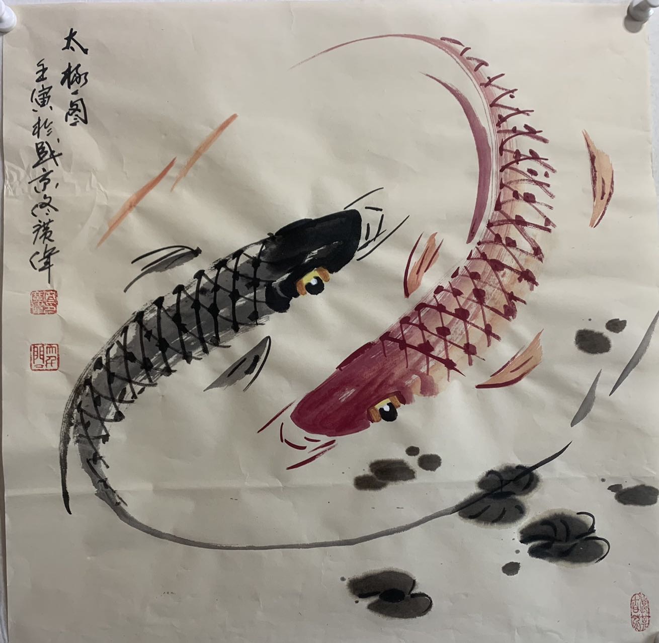 佟广伟 〈九鲤献寿〉省市美协会员,张大千第四代弟子。