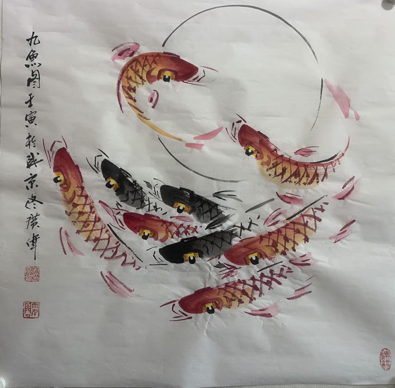 佟广伟 〈九魚图〉省市美协会员,张大千第四代弟子。